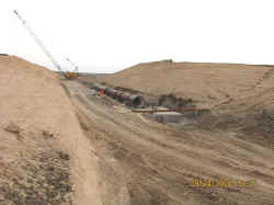 spillway pipe was installed, three 45 foot sections per day. |
